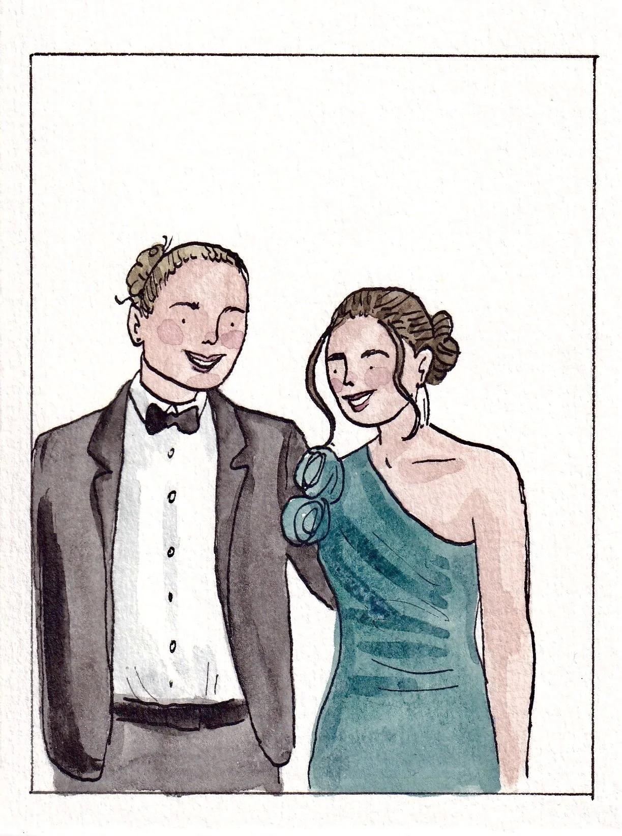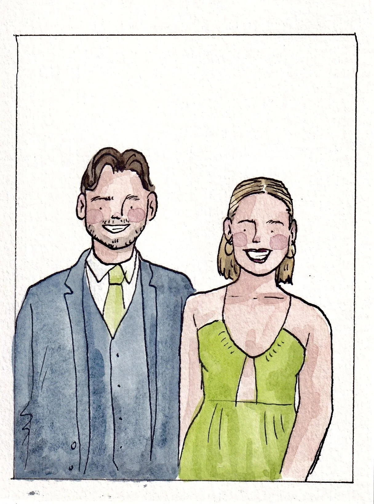 -A5 portrait of the couple drawn after