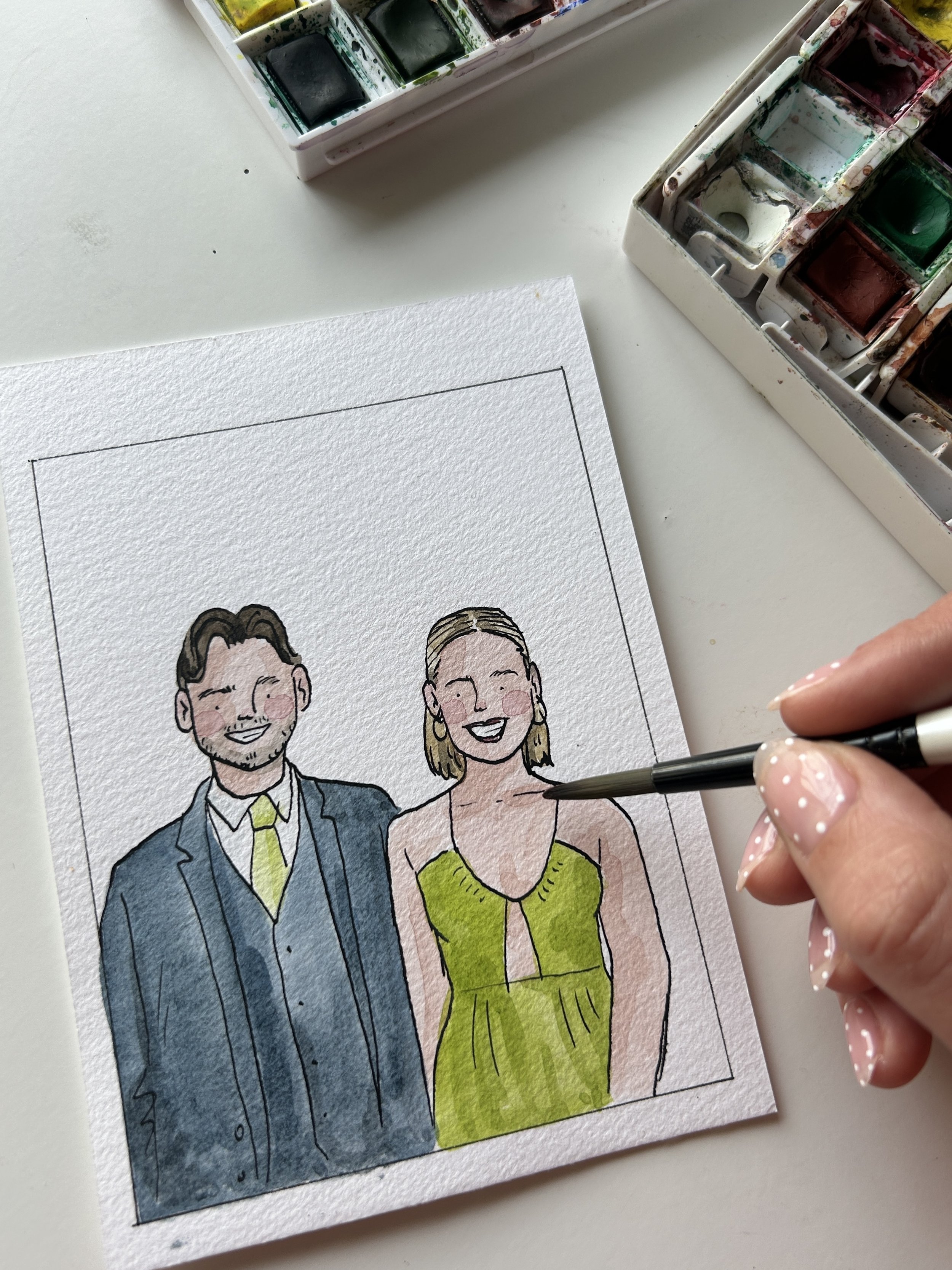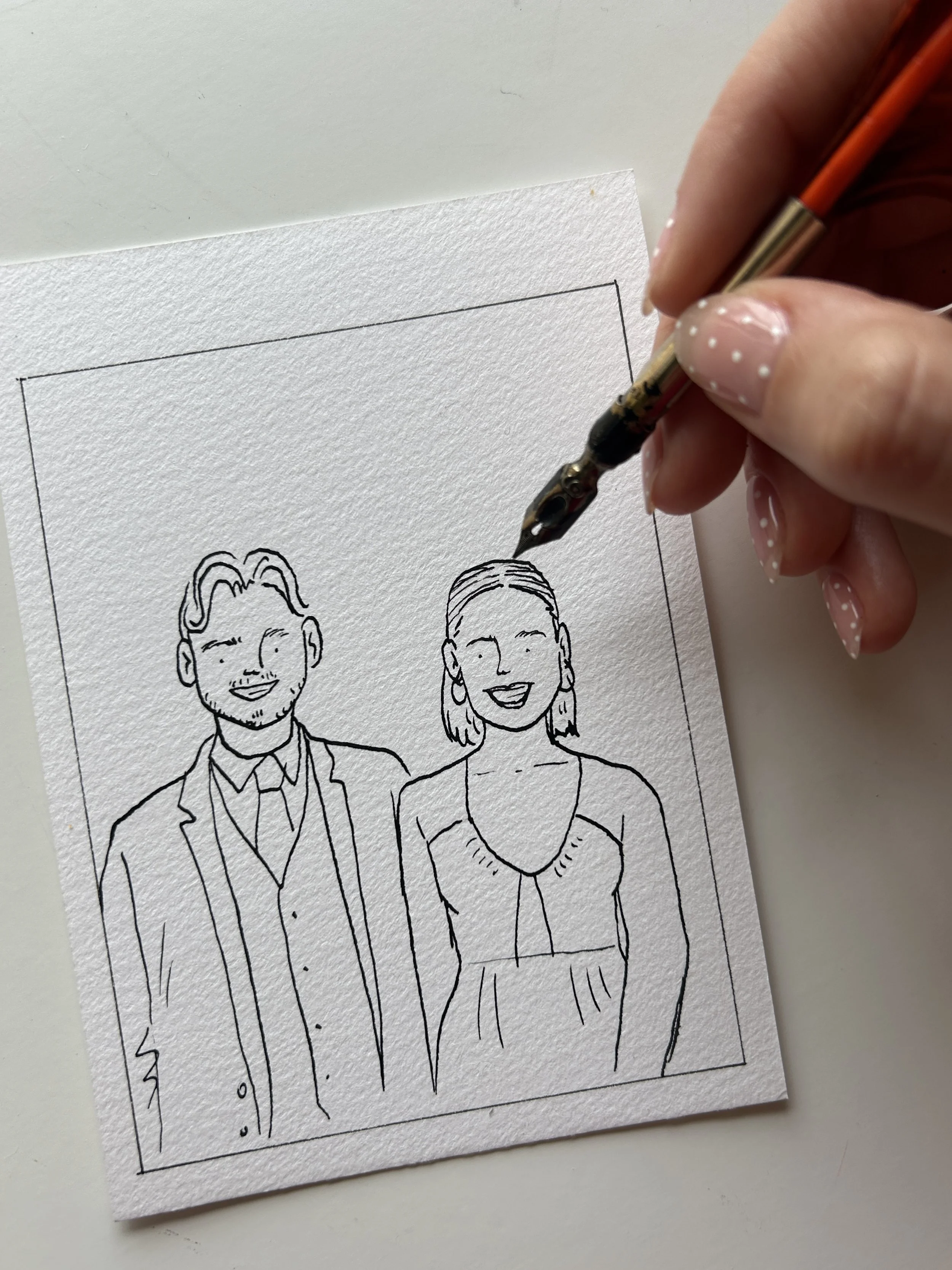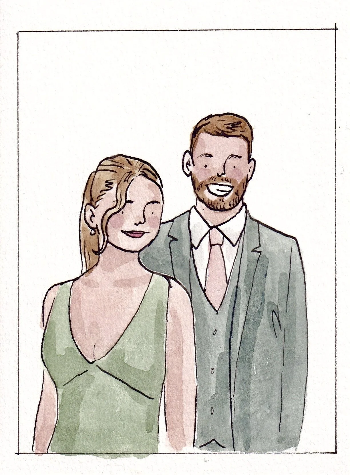 -A5 portrait of the couple drawn after the wedding